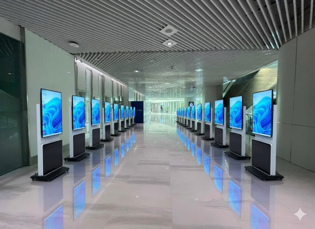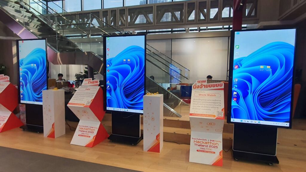 เทคโนโลยี Kiosk Touch Screen จอแบบตั้งพื้น สำหรับให้บริการข้อมูล การโฆษณา โปรโมชั่น เล่นเกมส์ present ผลงานโปสเตอร์ รองรับระบบ windows และ android